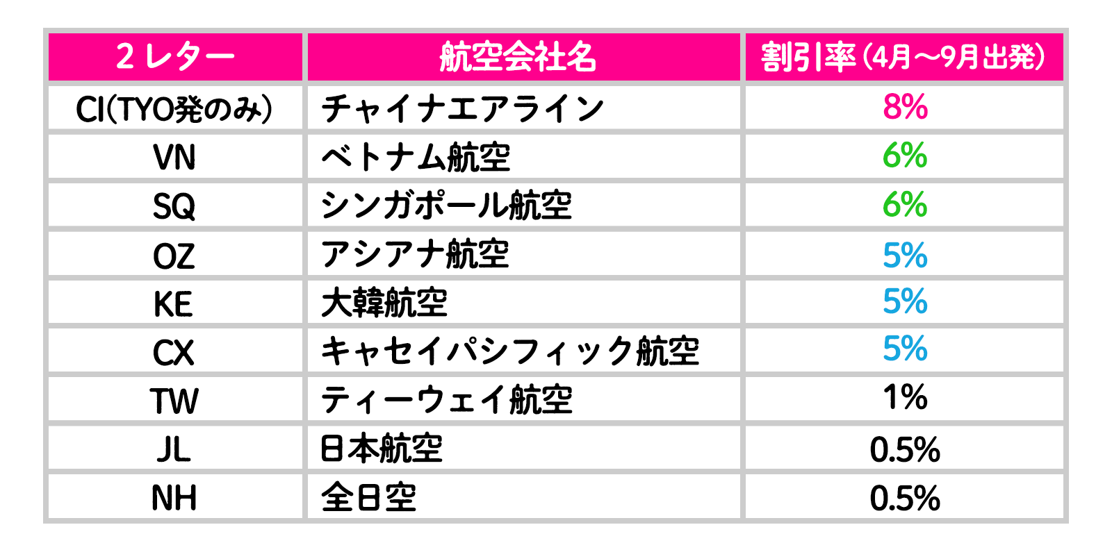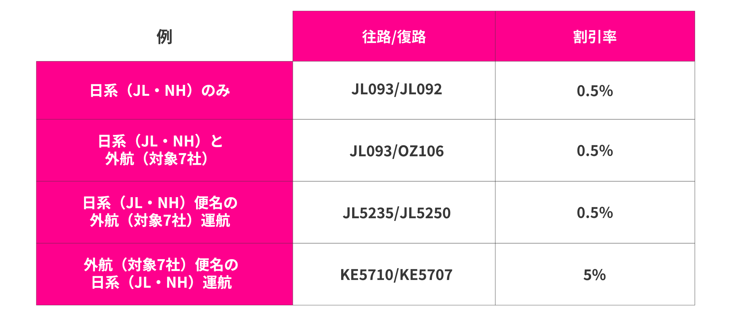 ※日系(JL・NH)と外航(対象 7社)が混在している場合は0.5%OFF